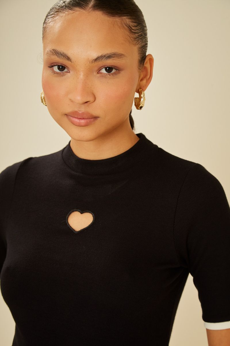 Blusa Malha Coração - Preto