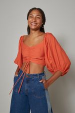 Confeccionada em viscose leve e fluida, a Blusa Tecido Manga Longa é elegante e ideal para diversas ocasiões. Em comprimento cropped, a peça apresenta shape justo, decote em "U" com detalhe franzido e amarração, valorizando o colo feminino, mangas longas bufantes e lastex posterior. Aproveite para combinar com peças e acessórios da coleção!