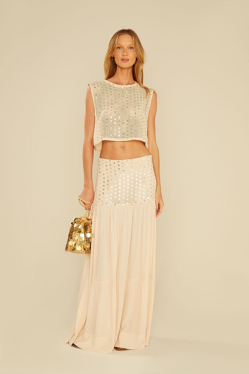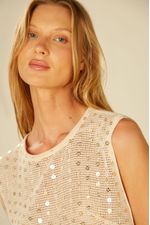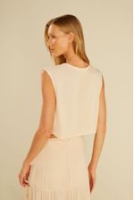 A Blusa Tela Bordada é a escolha ideal para compor produções sofisticadas com um toque contemporâneo. Confeccionada em base leve e confortável, apresenta aplicação de tela com bordados delicados na parte frontal, que adicionam textura, brilho sutil e elegância ao visual. O design sem mangas e a modelagem reta garantem caimento moderno e versátil, enquanto o acabamento minimalista nas costas equilibra a proposta fashion da peça. Perfeita para combinar com saias, calças de cintura alta ou conjuntos coordenados, transitando com facilidade do look casual chic ao noturno refinado.