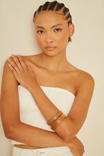 O Bracelete Madeira é o detalhe que transforma qualquer look em uma produção cheia de estilo. Produzido em madeira natural e decorado com aplicações metálicas delicadas, ele traz um contraste perfeito entre o rústico e o sofisticado. Versátil e atemporal, pode ser usado sozinho para um visual minimalista ou combinado com outros acessórios para um efeito marcante.