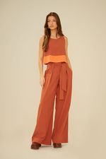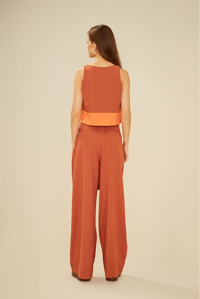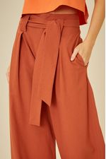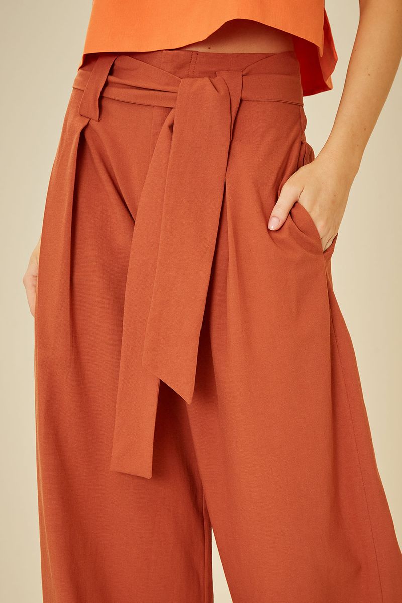 A Calça com faixa é uma peça casual, ideal para compor diversos visuais com estilo e conforto. A peça exibe uma modelagem pantalona, com cintura de cós alto e faixa para amarração, corte reto, pregas frontais e bolsos, garantindo versatilidade e uma silhueta elegante.