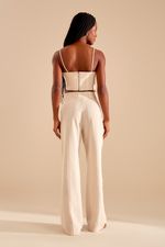 A Calça Listra Linho Lurex é uma peça elegante e versátil, perfeita para criar uma variedade de looks sofisticados. Com seu comprimento longo, cintura de cós alto que valoriza a silhueta, bolsos laterais práticos, pregas frontais que adicionam um toque de estilo e um shape reto que proporciona conforto, essa calça se destaca como uma escolha ideal para ocasiões especiais ou para o dia a dia. Além disso, o tecido em linho com detalhes em lurex confere um brilho sutil, elevando ainda mais a sofisticação do visual.