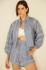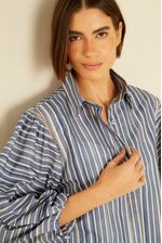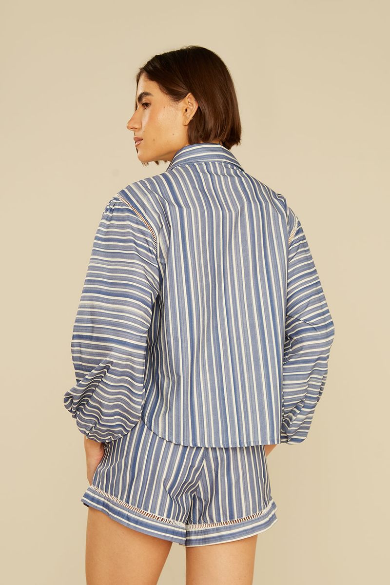 A Camisa Estampa Boeme Listra é sinônimo de estilo leve e contemporâneo. Com estampa listrada em tons de azul e branco, ela traz uma proposta sofisticada e descontraída ao mesmo tempo — perfeita para quem ama peças versáteis que transitam do casual ao elegante com facilidade. A modelagem ampla com mangas bufantes garante conforto e movimento, enquanto o detalhe em entremeio bordado nos ombros adiciona um toque artesanal e delicado. O fechamento frontal por botões e a gola clássica equilibram o visual, resultando em uma camisa que combina charme e personalidade em cada detalhe.