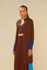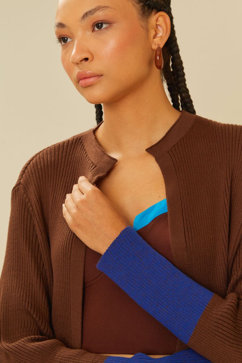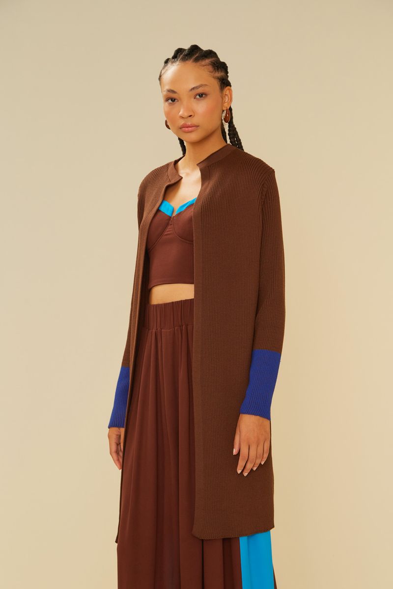 Cardigan Tricot Duo Color - Marrom Brown / Azul Alado