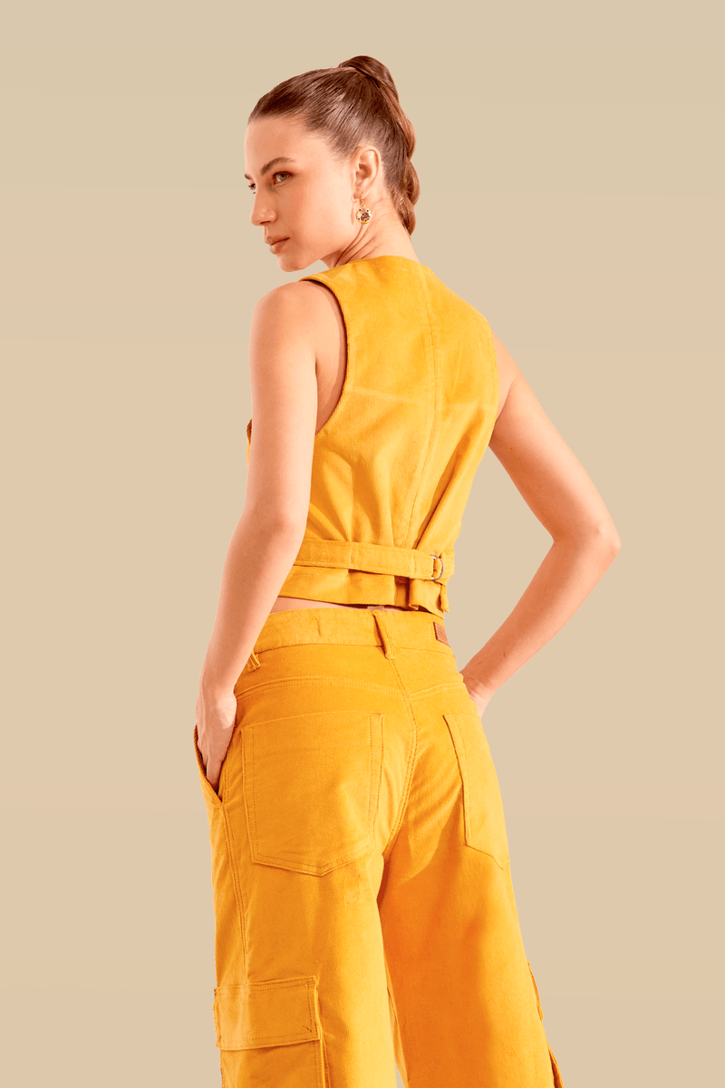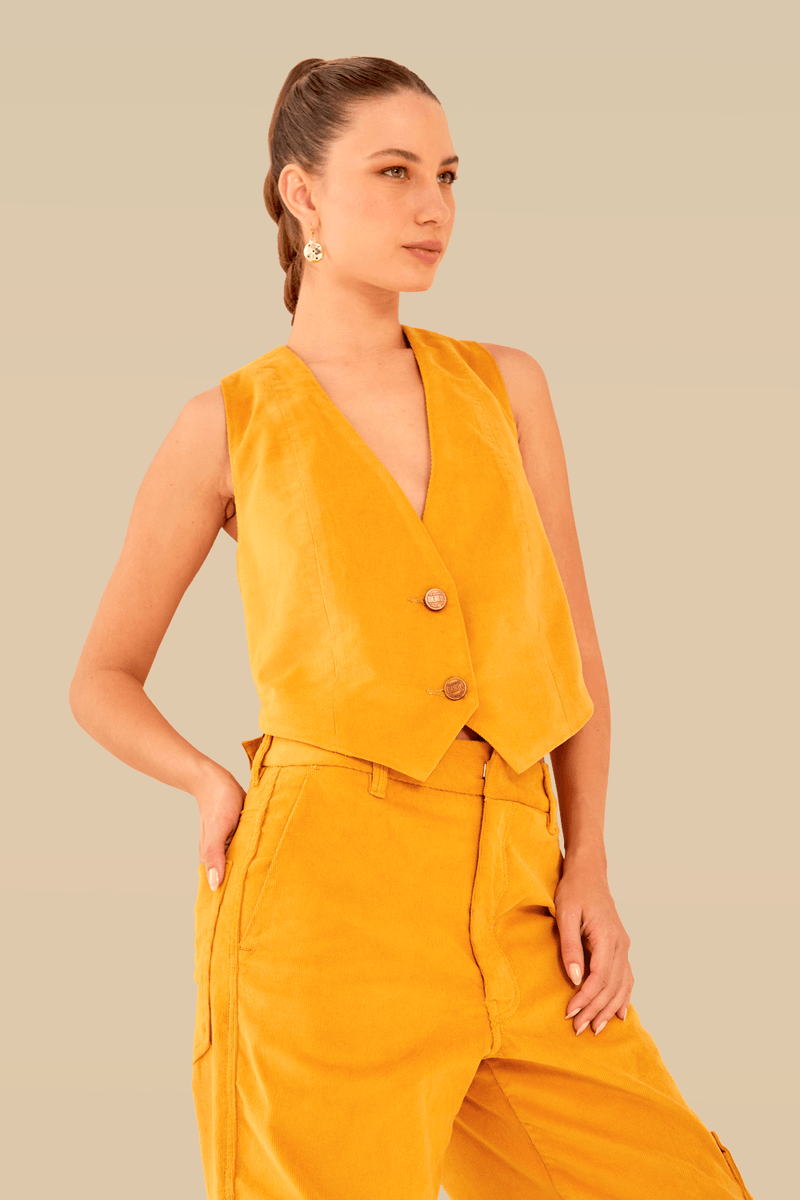 O Colete Sarja Veludo é uma peça sofisticada e versátil, perfeita para completar uma variedade de looks, desde os mais casuais até os mais formais. Ele pode ser usado tanto aberto quanto fechado, oferecendo flexibilidade no estilo. Além disso, apresenta um botão frontal que confere praticidade e um detalhe de passador regulável, permitindo um ajuste personalizado para maior conforto e elegância.