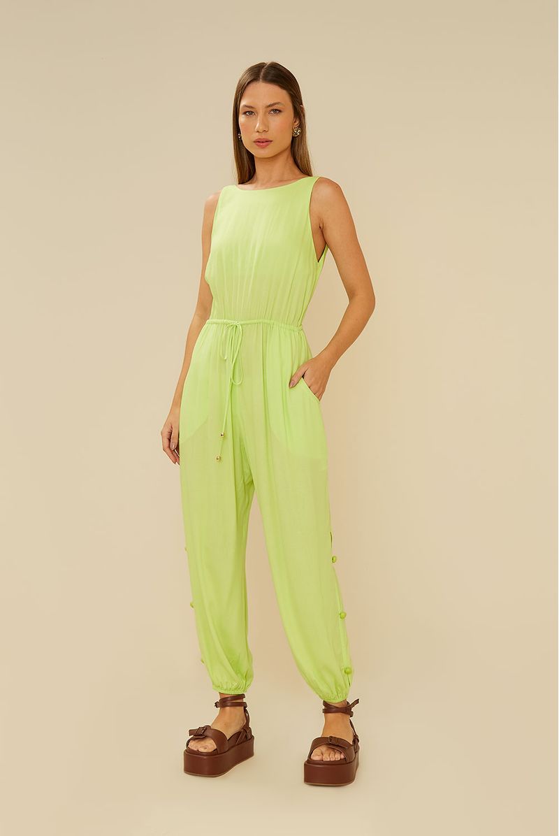 Macacão Acinturado S/ Manga - Verde Crayon