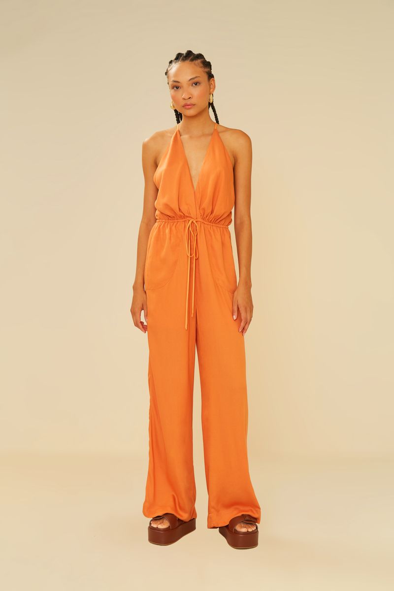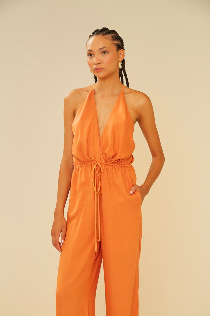 Macacão Tecido C/ Enforcador - Bege Caramelo