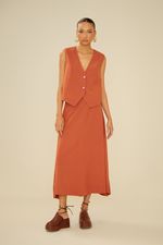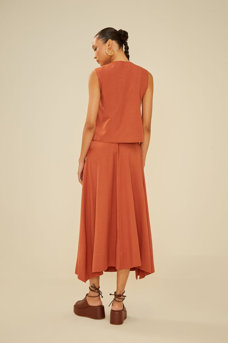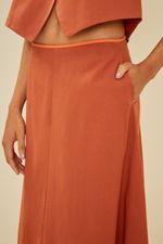 A Saia com Vivo é elegante e versátil, ideal para compor diversos looks. A peça apresenta um corte amplo, cintura de cós alto com zíper para fechamento posterior e um distinto detalhe com vivo, destacando seu design sofisticado.