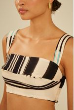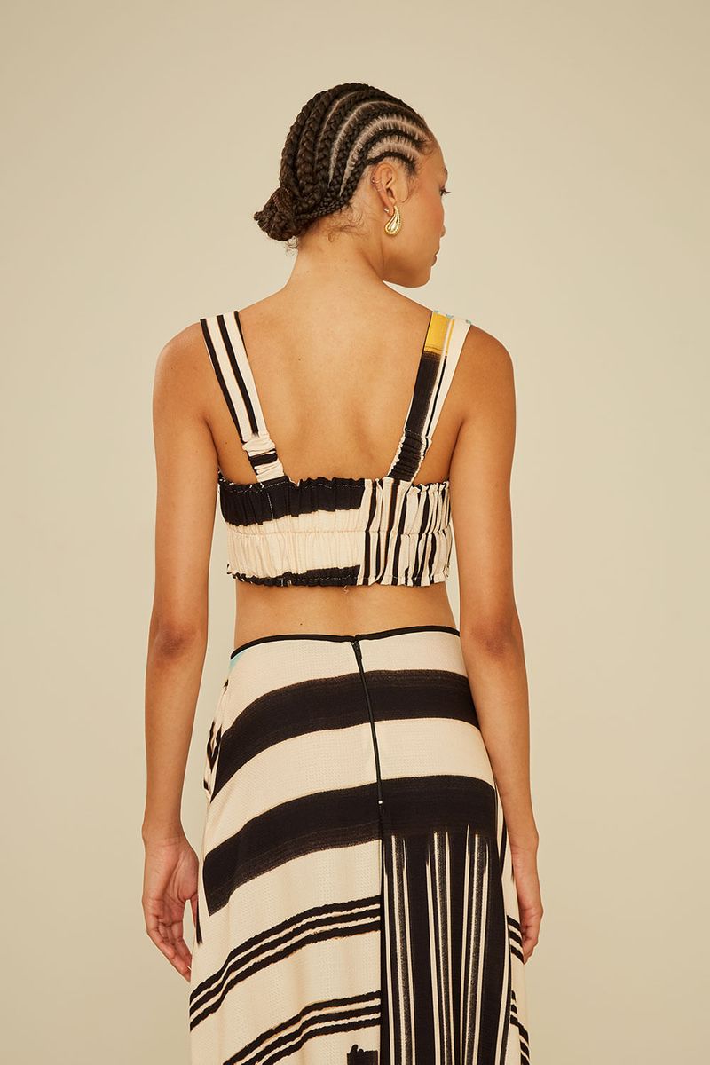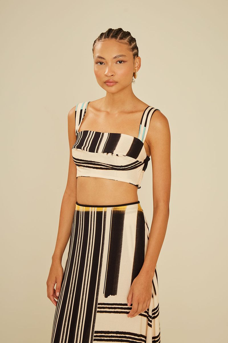 O Top Estampa Stripeway é a peça perfeita para quem busca estilo e conforto em um só look. Com design moderno e modelagem cropped, ele traz alças largas e detalhe de lastex nas costas, garantindo ajuste perfeito ao corpo. Sua estampa exclusiva mistura listras em preto, off-white e toques de cores vibrantes, criando um visual sofisticado e versátil, ideal para combinar tanto com peças casuais quanto produções mais elegantes.