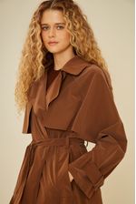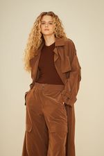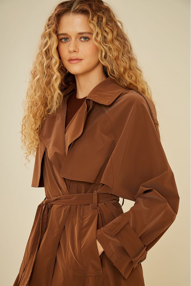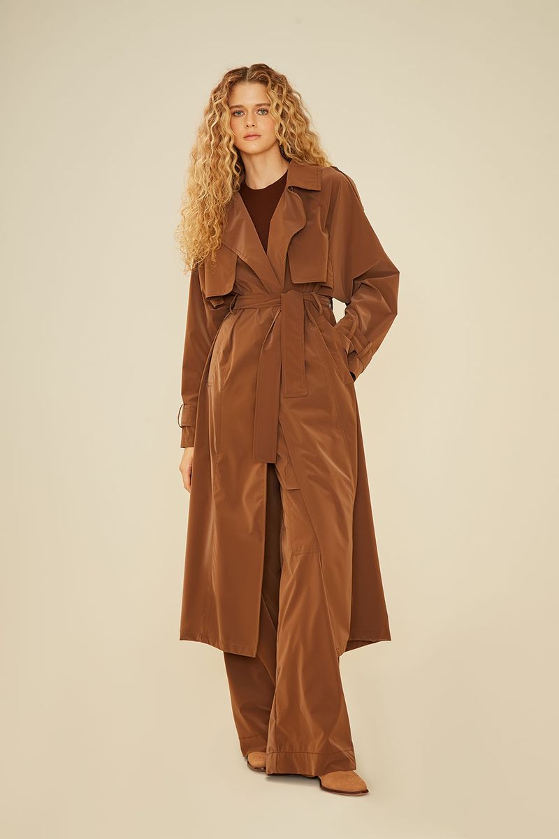 Com design clássico e acabamento moderno, o Trench Coat Techno é a escolha perfeita para compor looks sofisticados nos dias mais frios. Confeccionado em tecido de aspecto acetinado com leve brilho tecnológico, a peça traz caimento estruturado e toque suave. Possui modelagem longa e ampla, lapelas marcantes, pala dupla frontal e nas costas, mangas longas com ajuste nos punhos e fenda posterior para maior mobilidade. O cinto do mesmo tecido permite ajuste na cintura, valorizando a silhueta. Ideal para sobrepor produções urbanas e elegantes, o Trench Coat Techno é versátil e atemporal.