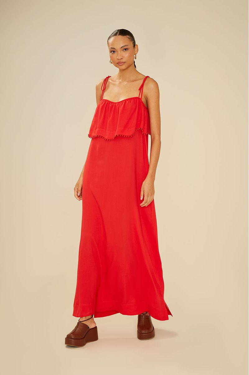 Vestido Bordado Bolas - Vermelho Paixao
