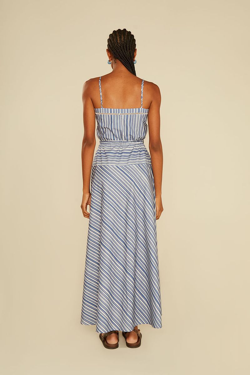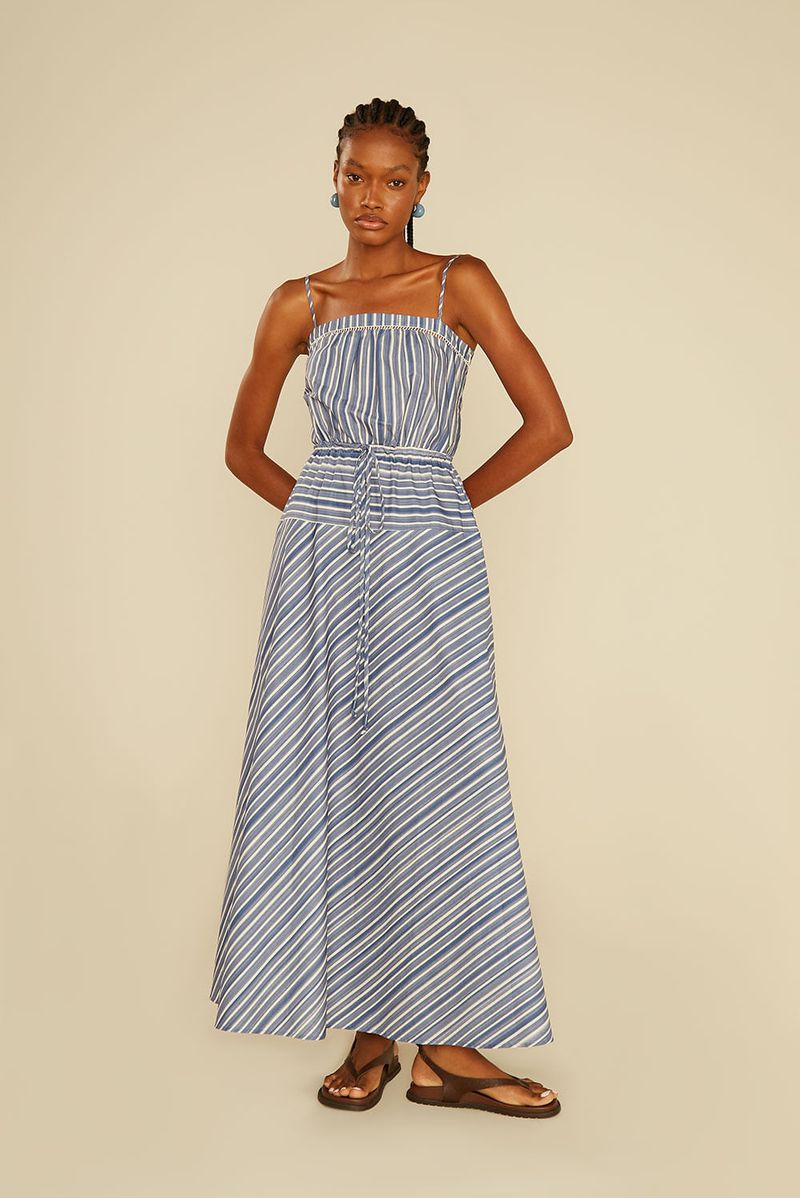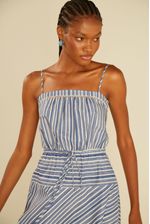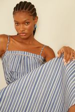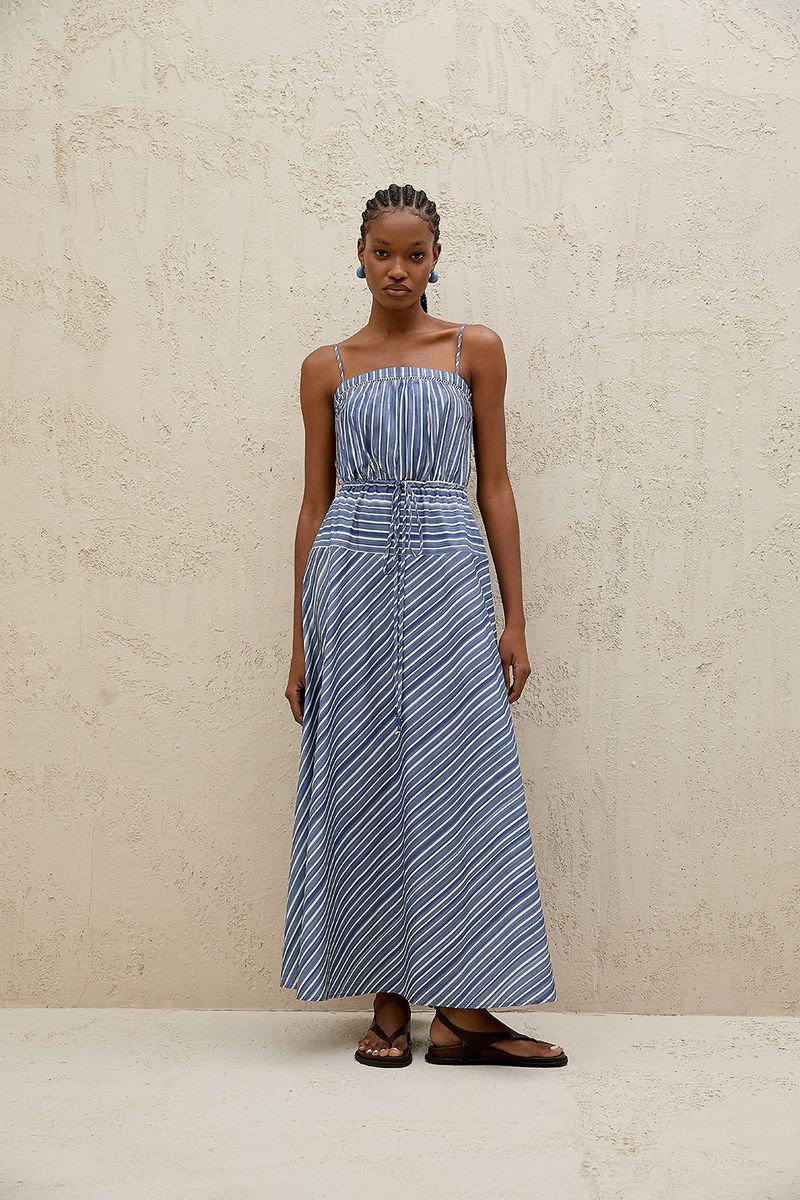 O Vestido Estampa Boeme Listra é a perfeita tradução de leveza e elegância natural. Com modelagem fluida e caimento impecável, ele traz o charme atemporal das listras em tons de azul e branco, que alongam a silhueta e conferem um ar sofisticado e contemporâneo. O decote reto com detalhe de entremeio bordado adiciona um toque artesanal delicado, enquanto as alças finas e o cinto ajustável na cintura valorizam o corpo de forma sutil e feminina.