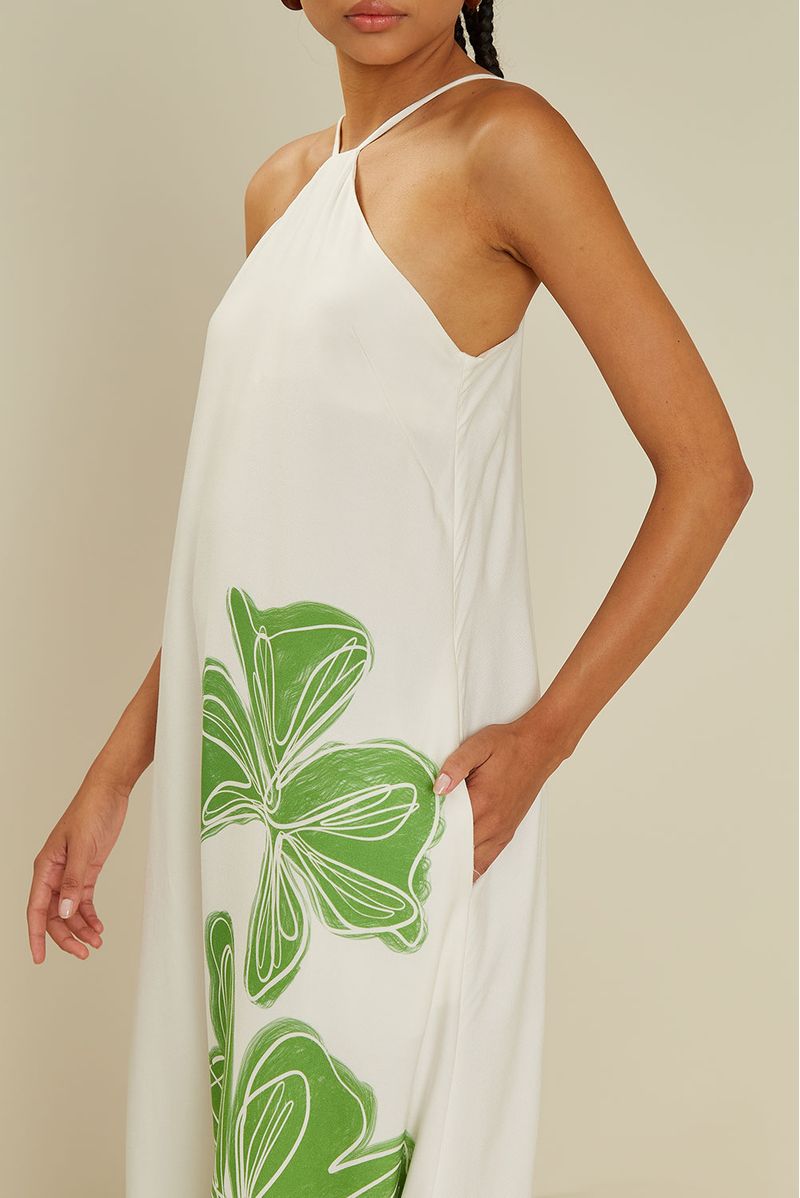 O Vestido Estampa Clover destaca-se pelo design elegante, sendo perfeito para várias ocasiões. Confeccionado em viscose de alta qualidade, conta com comprimento midi, barra assimétrica e alças ajustáveis que proporcionam conforto. Seu corte solto e estampa exclusiva conferem sofisticação e leveza à peça, que alia estilo a praticidade.