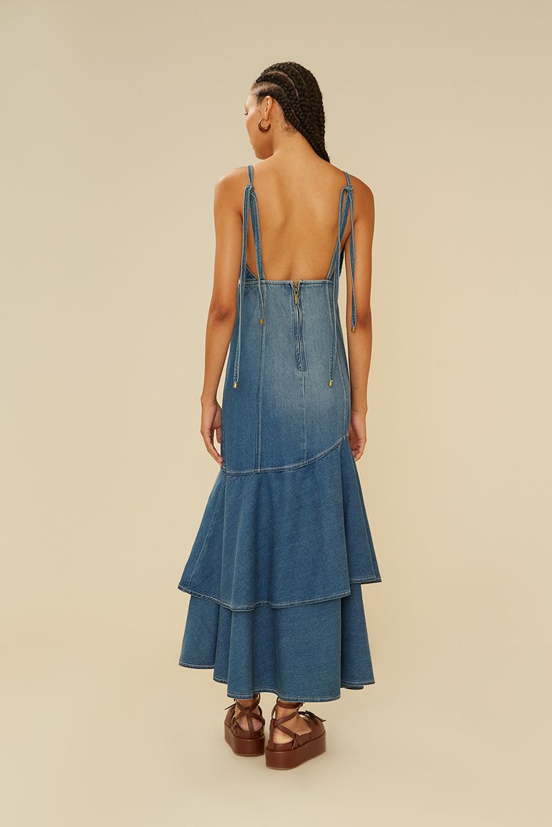 O Vestido Jeans Assimétrico é uma peça sofisticada e versátil, perfeita para criar diferentes looks em diversas ocasiões. Confeccionado em algodão de alta qualidade, este vestido conta com um comprimento midi e uma barra irregular que traz um toque moderno. Os babados delicados e o corte reto favorecem o corpo, enquanto as alças com amarração nos ombros proporcionam um ajuste personalizado. O decote em "V" valoriza o colo, tornando essa peça uma escolha ideal para quem deseja aliar conforto e estilo.