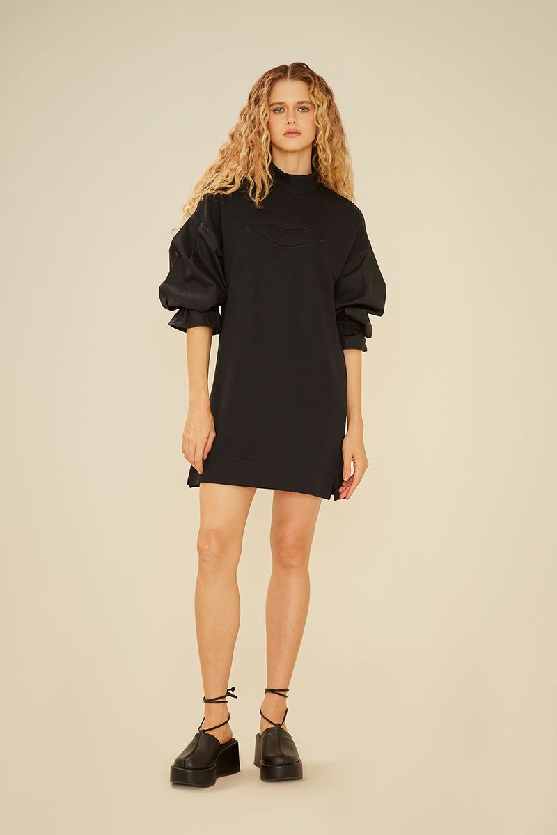 Vestido Malha Bordado Boca - Preto