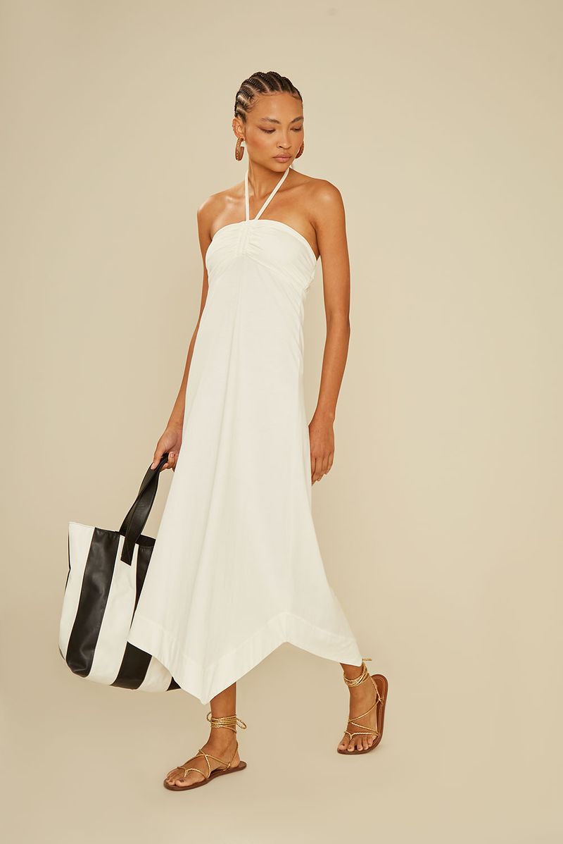 Vestido Malha Recortes - Off White